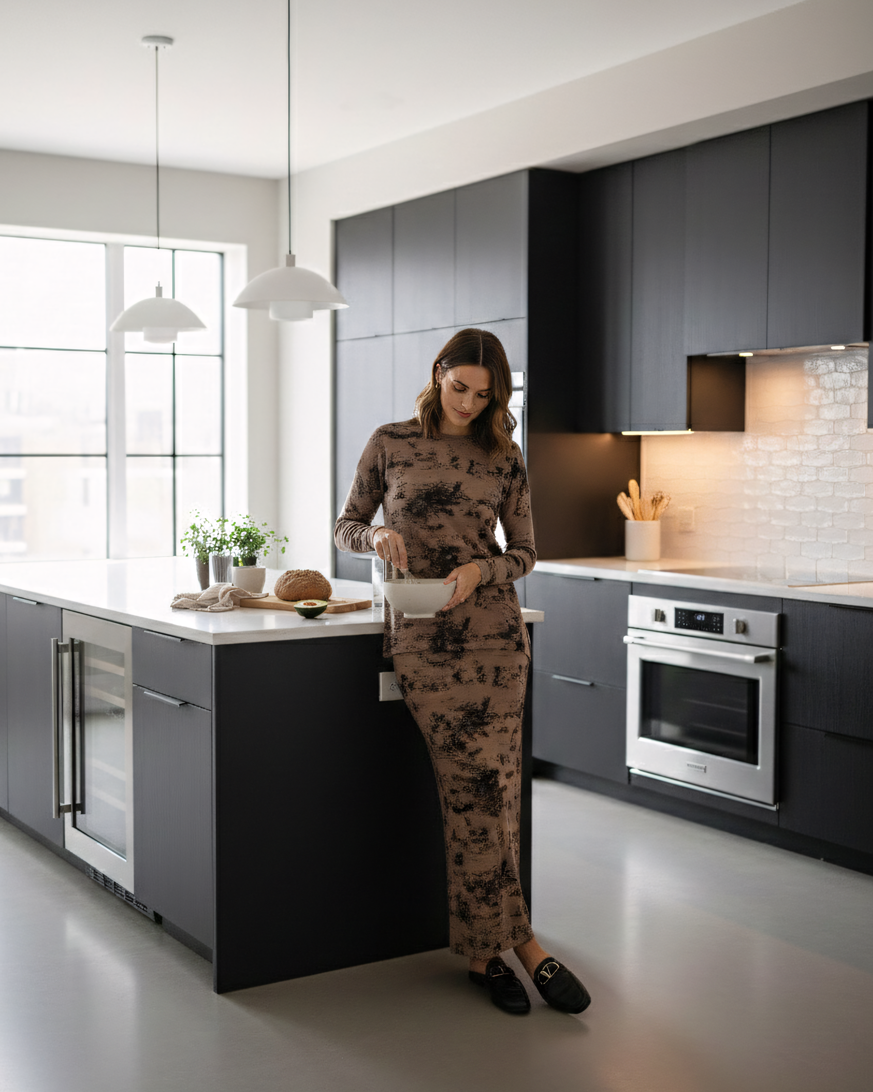 The Sydney Maxi Skirt is our signature straight-cut pencil maxi—sleek, flattering, and made in our buttery-soft ribbed fabric. Now updated with a chic foil design to match the Milan Foil Cardigan, it pairs perfectly with the Sydney Swing Top for a coordinated look that’s both stylish and comfortable.